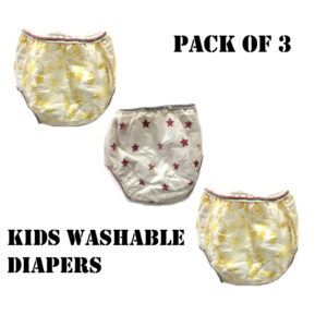 Set of 3 Reusable Baby Nappies – Washable, Printed Design with Soft Towel Lining